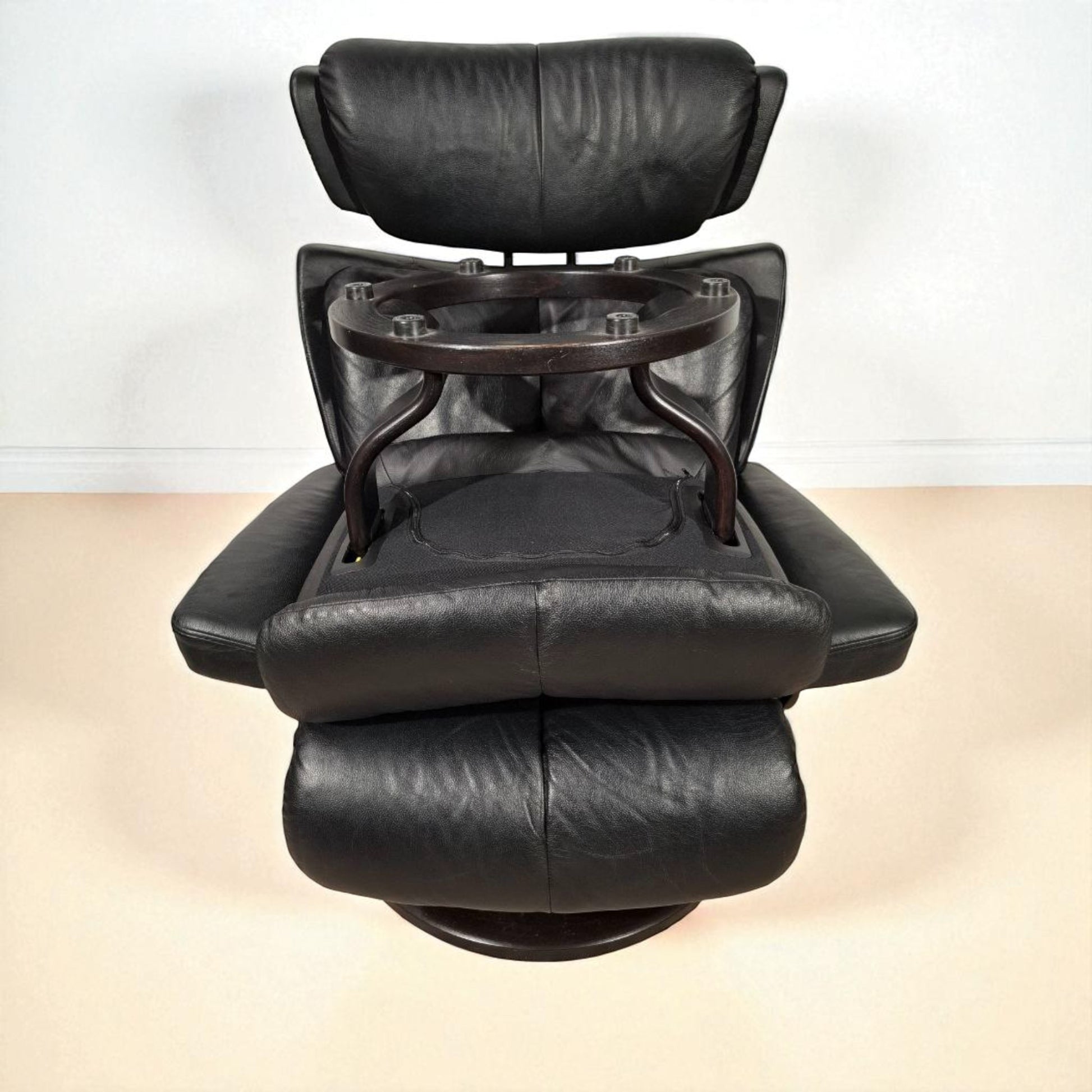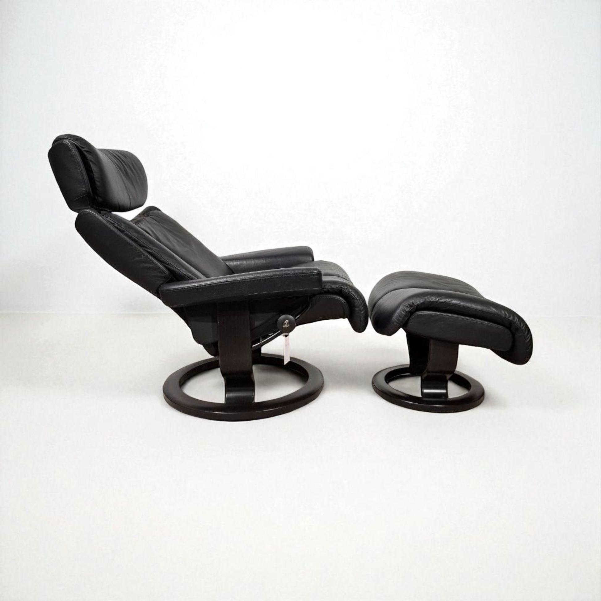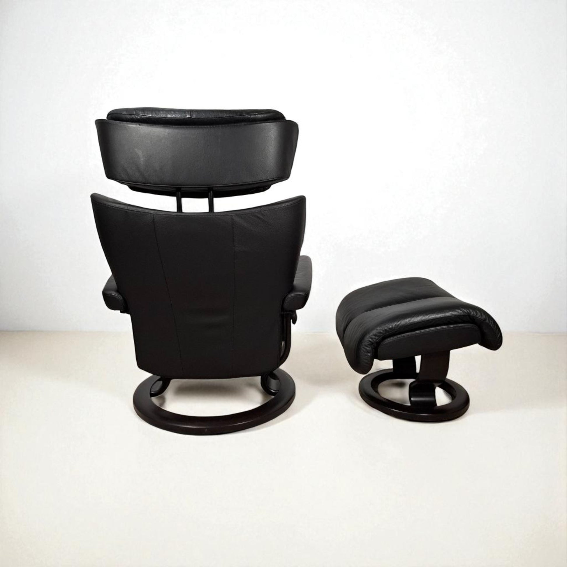 MøbelGlede tilbyr Stressless Magic i størelse(M) lenestol med krakk fra Ekornes. Stolen er trukket med svart kvalitet skinn.