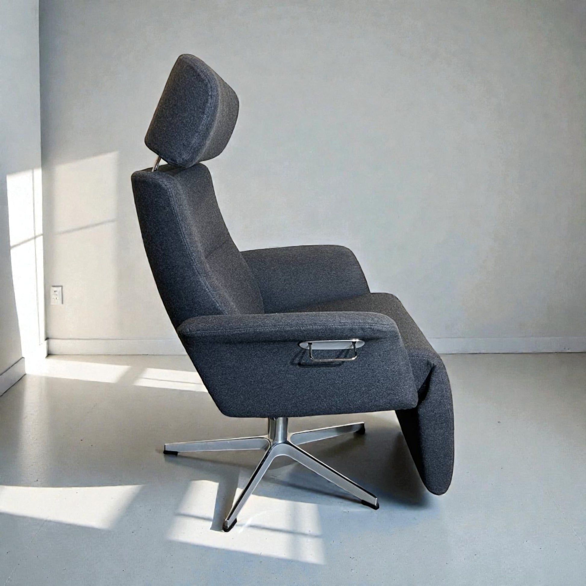 Opplev luksus og ergonomi i toppklasse med Conform Master, en av Skandinavias mest ikoniske kvalitetslenestoler. Denne modellen i elegant grå tekstil kombinerer tidløst design med enestående sittekomfort – perfekt for både moderne og klassiske hjem.