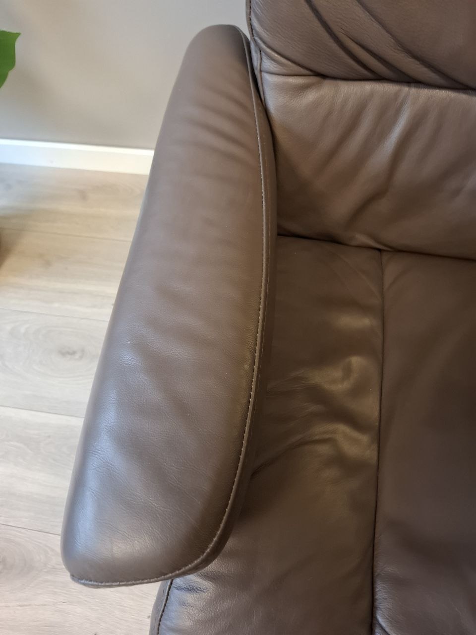 PENT BRUKT Stressless Memphis lenestol i lys brun med krakk NB: krakk er ikke den orginale men passer ganske bra med stolen.
