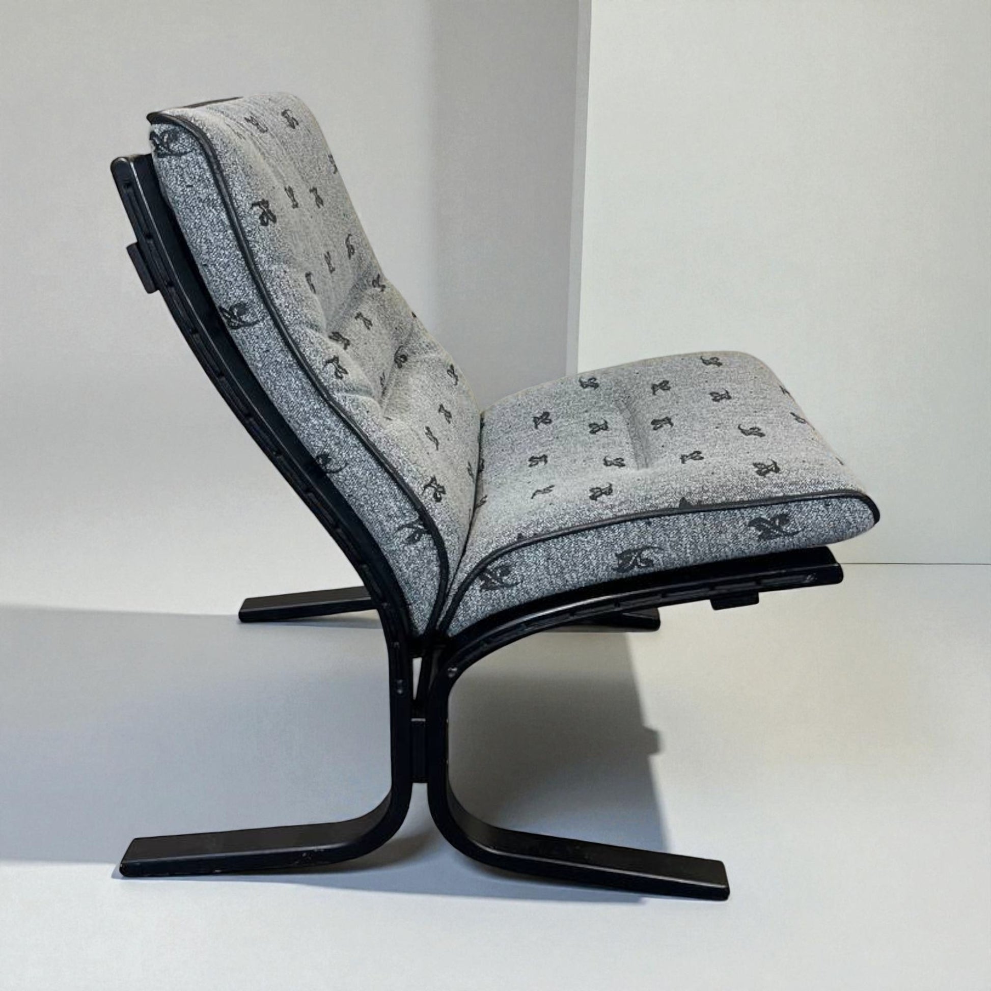 MøbelGlede tilbyr deg pent brukt unik Klassisk Siesta lenestol i grå tekstil sort treverk. Siesta gir deg den unike sitteopplevelsen du fortjener.